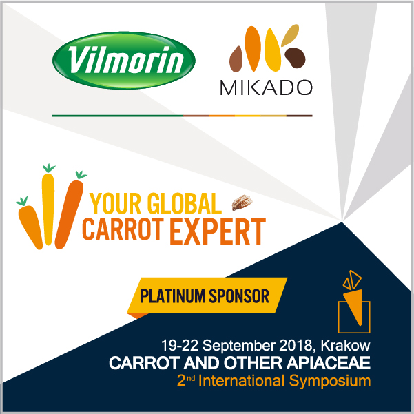 Le 2nd Symposium International sur les carottes et autres apiacées se tiendra à Cracovie (en Pologne) du 19 au 22 septembre 2018. Après le succès remarquable de la première édition tenue à Angers (en France) en 2014, Vilmorin-Mikado, "votre expert mondial de la carotte", est honoré de renouveler son parrainage Platinium.